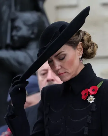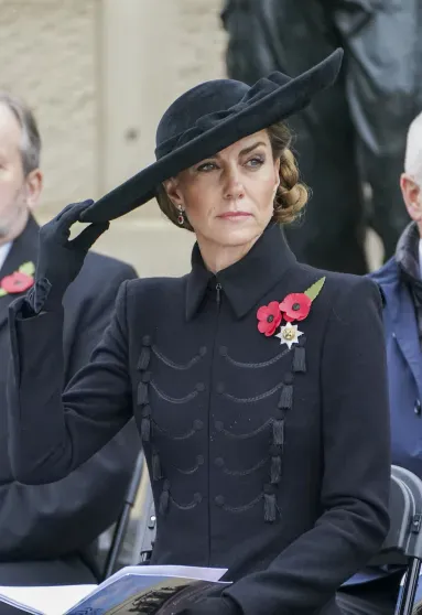 Ուելսի 43-ամյա արքայադուստրը հագել է Catherine Walker-ի սև վերարկու-զգեստ: Նա կերպարը լրացրել է Jane Taylor-ի լայնեզր գլխարկով, կարճ ձեռնոցներով և Gianvito Rossi-ի կրունկավոր կոշիկներով: Զարդերից Քեյթը ընտրել է ադամանդե և ռուբինե ականջօղեր, իռլանդական գվարդիայի կրծքազարդ և ավանդական կարմիր կակաչ: