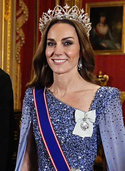 43-ամյա Քեյթ Միդլթոնը ճաշկերույթին ներկայացել էր փայլուն զգեստով՝ Ջենի Փեքհեմի թիկնոցով, սակայն գլխավոր իրադարձությունը թագուհի Վիկտորիայի հավաքածուից հազվագյուտ թագն էր՝ Ուելսի արքայադստեր կողմից երբևէ կրածներից ամենամեծը: Արևելյան շրջանաձև թագը, որը պատրաստվել է 1853 թվականին, զարդարված է ադամանդներով և ռուբիններով՝ փայլուն լոտոսների և մողոլական ոճի կամարների տեսքով: Եղիսաբեթ II թագուհին այս զարդը մի անգամ կրել է 2005 թվականին Մալթա կատարած իր այցի ժամանակ։