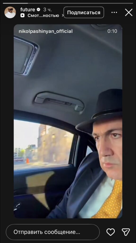 Ամերիկացի աշխարհահռչակ ռեփեր Future-ը (Նայվադիուս Դեմուն) «Ինստագրամ»-ի իր էջի սթորի բաժնում կիսվել է Հայաստանի վարչապետ Նիկոլ Փաշինյանի տեսանյութով։